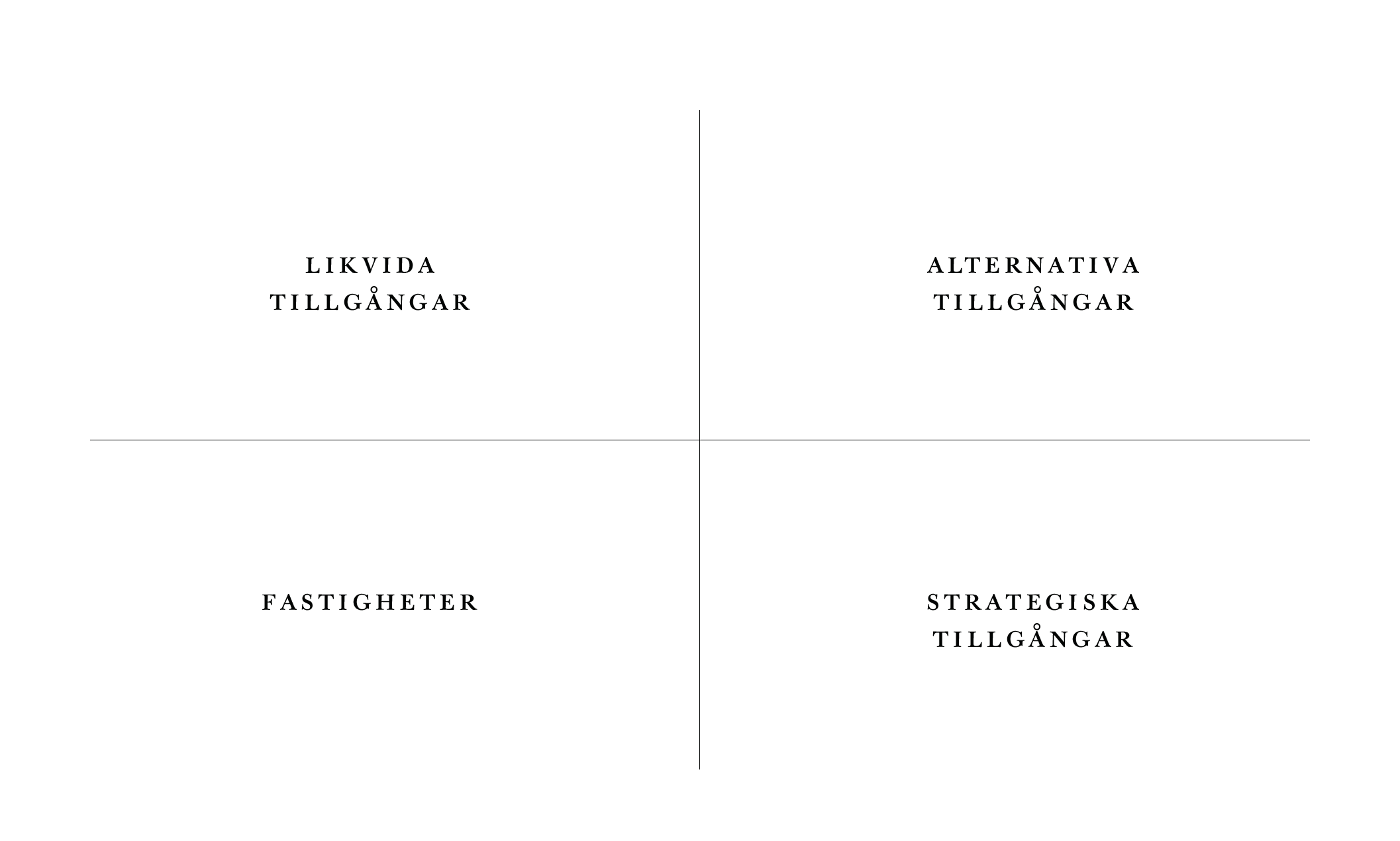 Vi delar in våra investeringar i följande fyra tillgångsklasser